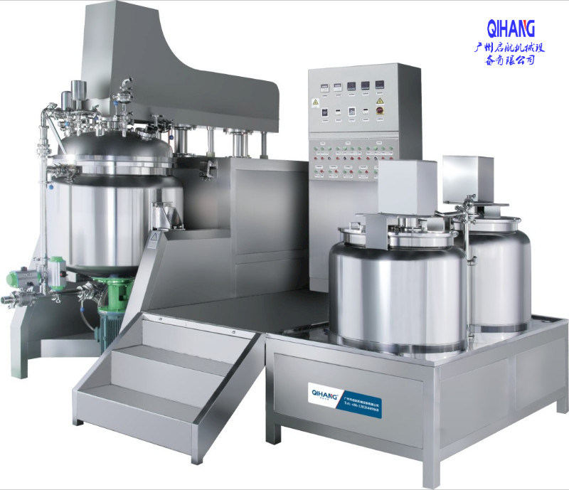 Vacuum emulsifying machine, high shear homogenizer, cosmetic cream mixer means the material in a vacuum state, the use of high-shear emulsifier efficient, rapid and evenly distributed one phase or multiple phase to another phase, and each phase under normal circumstances (such as oil and water phase) are mutually exclusive.
